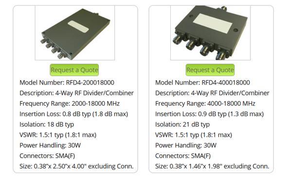Broadband Rf dividers/combiner products