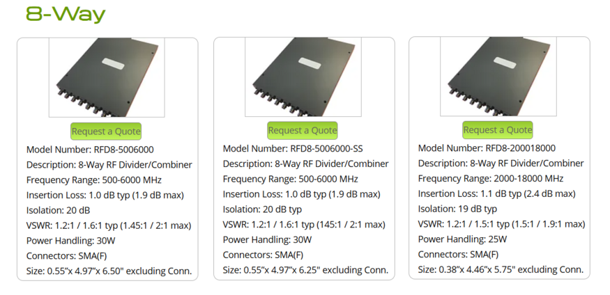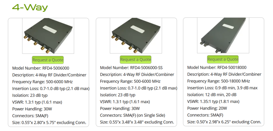 Broadband Rf dividers/combiner products